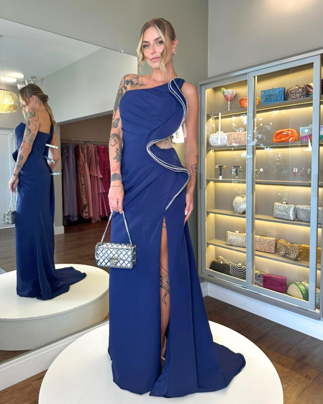 | Manga | Ombro único, Manga longa |